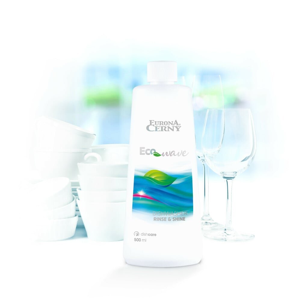Zabraňuje tvorbě vodních usazenin na nádobí, sklenicích a příborech.