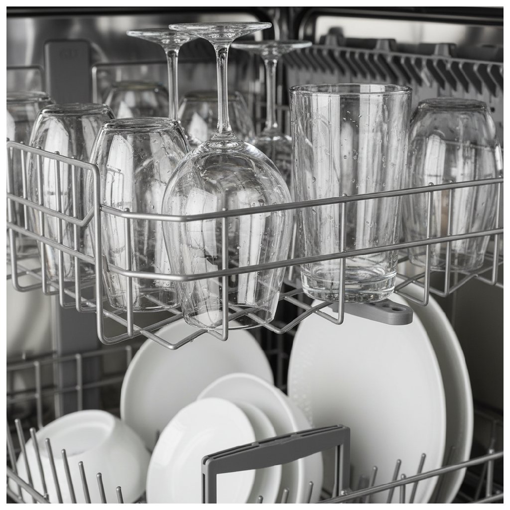 - Zabraňuje tvorbě vodních usazenin na nádobí, sklenicích a příborech.