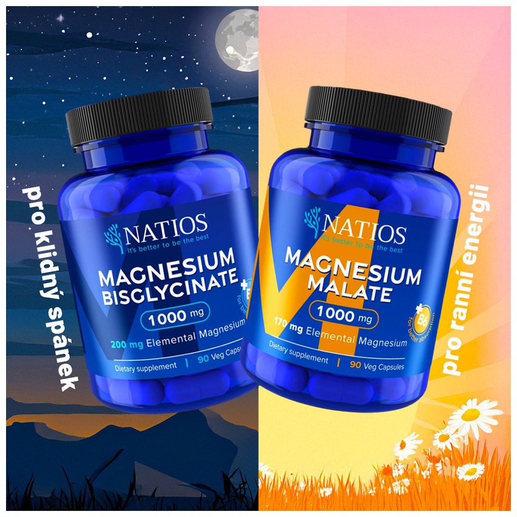 Pro večerní klid a kvalitní spánek je zde NATIOS Magnesium Bisglycinate. Stejně jako malát je i bisglycinátová forma snadno vstřebatelná, přičemž má uklidňující účinky na nervový systém, což napomáhá uvolnění a přípravě na spánek.