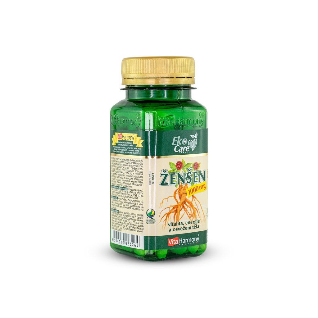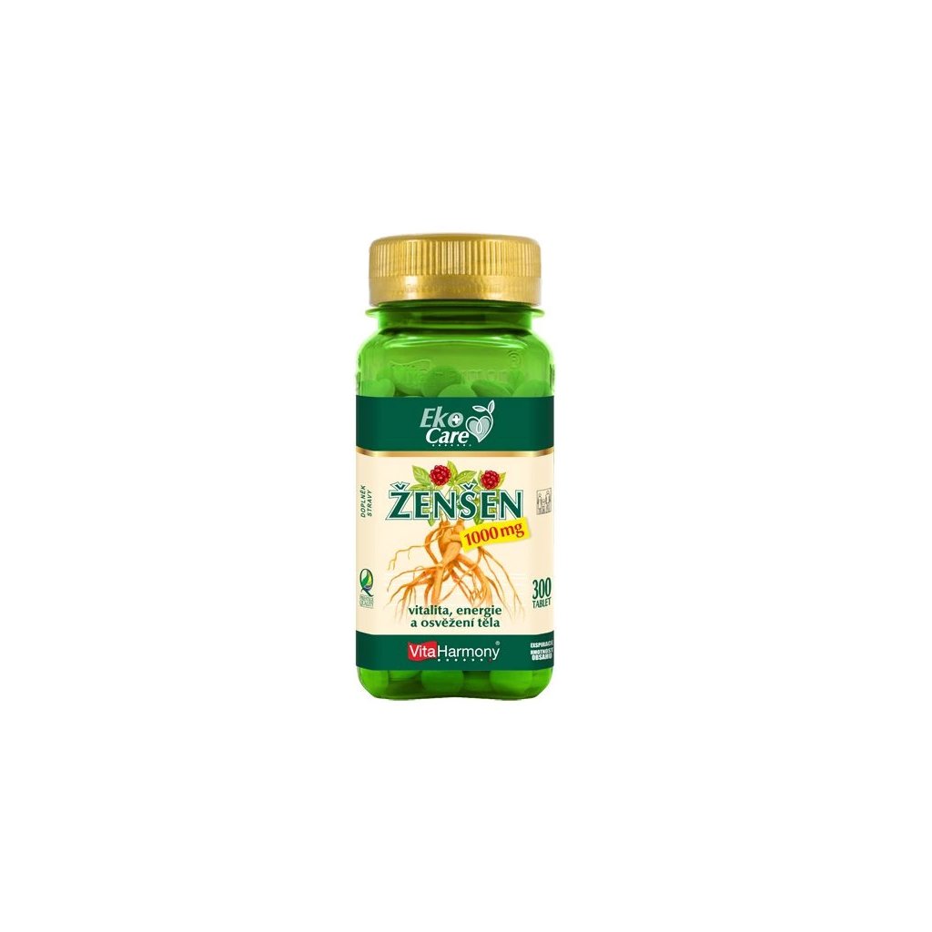 Ženšen 1000 mg - Ženšen pravý, latinsky Panax ginseng, někdy označovaný také jako všehoj ženšenový nebo ženšen korejský, je jedna z nejznámějších léčivých rostlin na světě. Široké využití ženšenu vychází z tradiční čínské medicíny, kde byl hojně využíván již od pradávna. Nejvyšší množství účinných látek obsahuje jeho kořen, který se využívá pro podporu duševního i fyzického zdraví, při dlouhodobé stresové zátěži nebo rekonvalescenci.